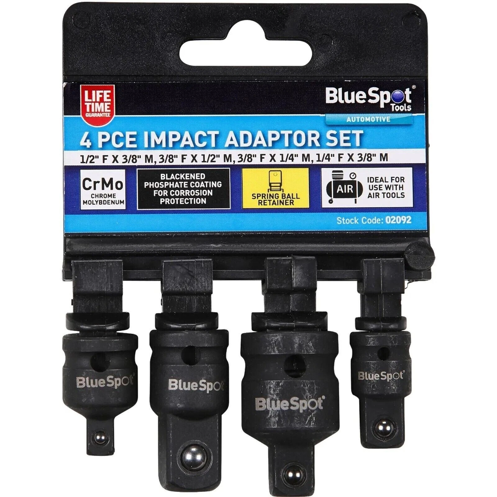 BlueSpot 4pc Impact Socket Converter Reducer Adapter Set 1/4″ 1/2″ 3/8″