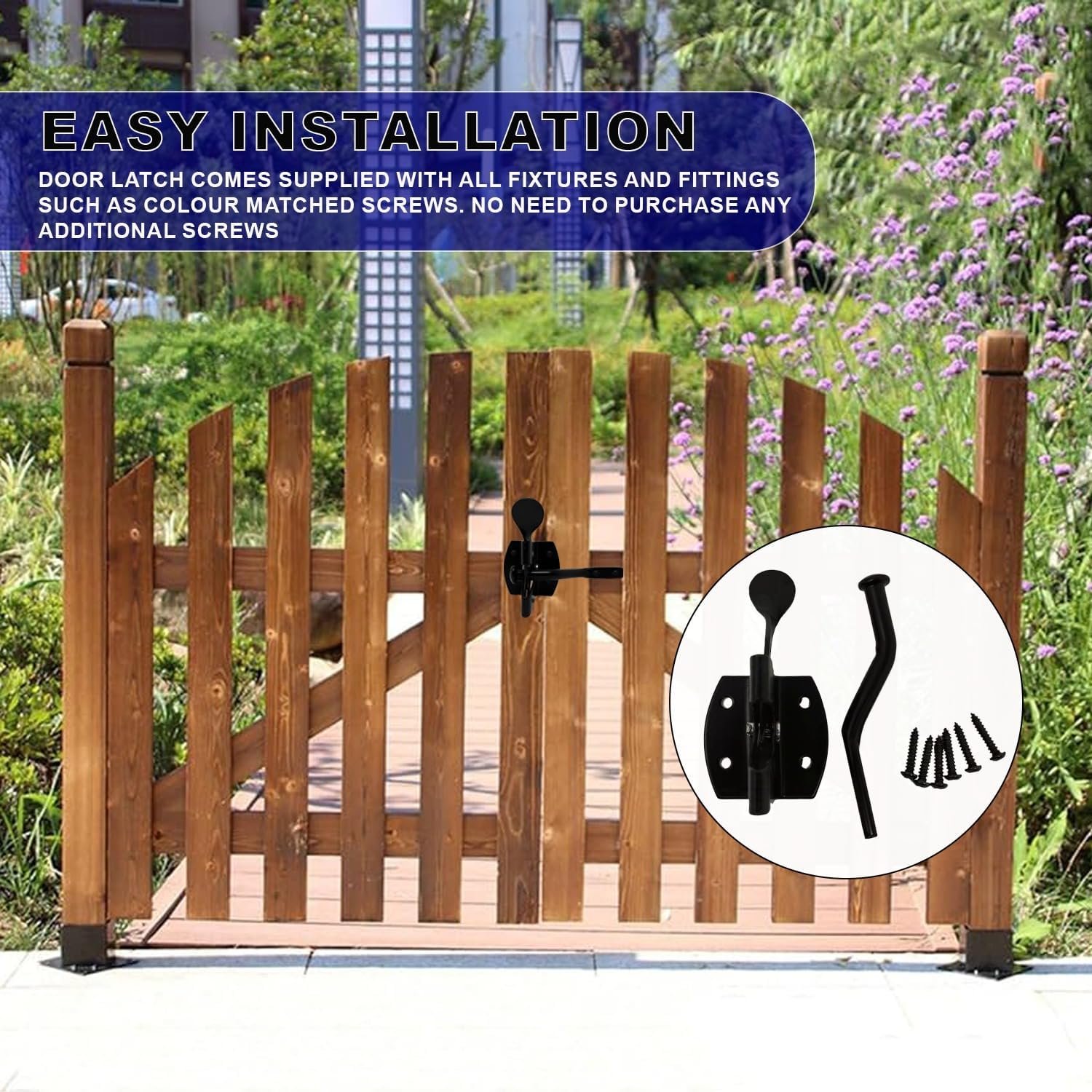 𝐄𝐚𝐬𝐲 𝐈𝐧𝐬𝐭𝐚𝐥𝐥𝐚𝐭𝐢𝐨𝐧: These gate locks for wooden gates are surface fixed so they are easy to install and can be done by any one. The door latch comes supplied with all fixtures and fittings such as colour matched screws. No need to purchase any additional screws with the garden gate lock